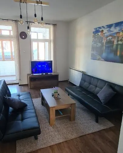 2-slaapkamer Grand Old Sarajevo Appartement ligt op sechts 6 minuten wandelafstand van de 11/07/95 Galerij en omvat parkeerplaatsen voor degenen die met de auto reizen. Er zijn verschillende toeristische trekpleisters zoals het Nationaal Museum van Bosnië en Herzegovina, gelegen binnen 25 minuten te voet van dit appartement van 100 m^2.